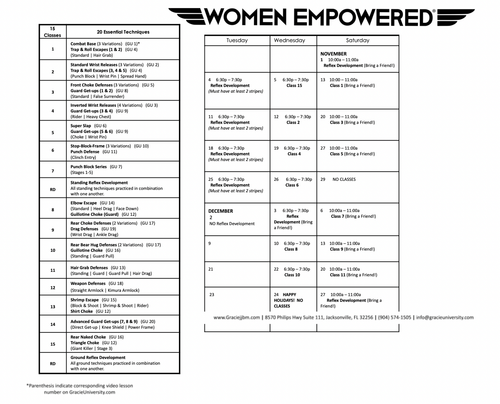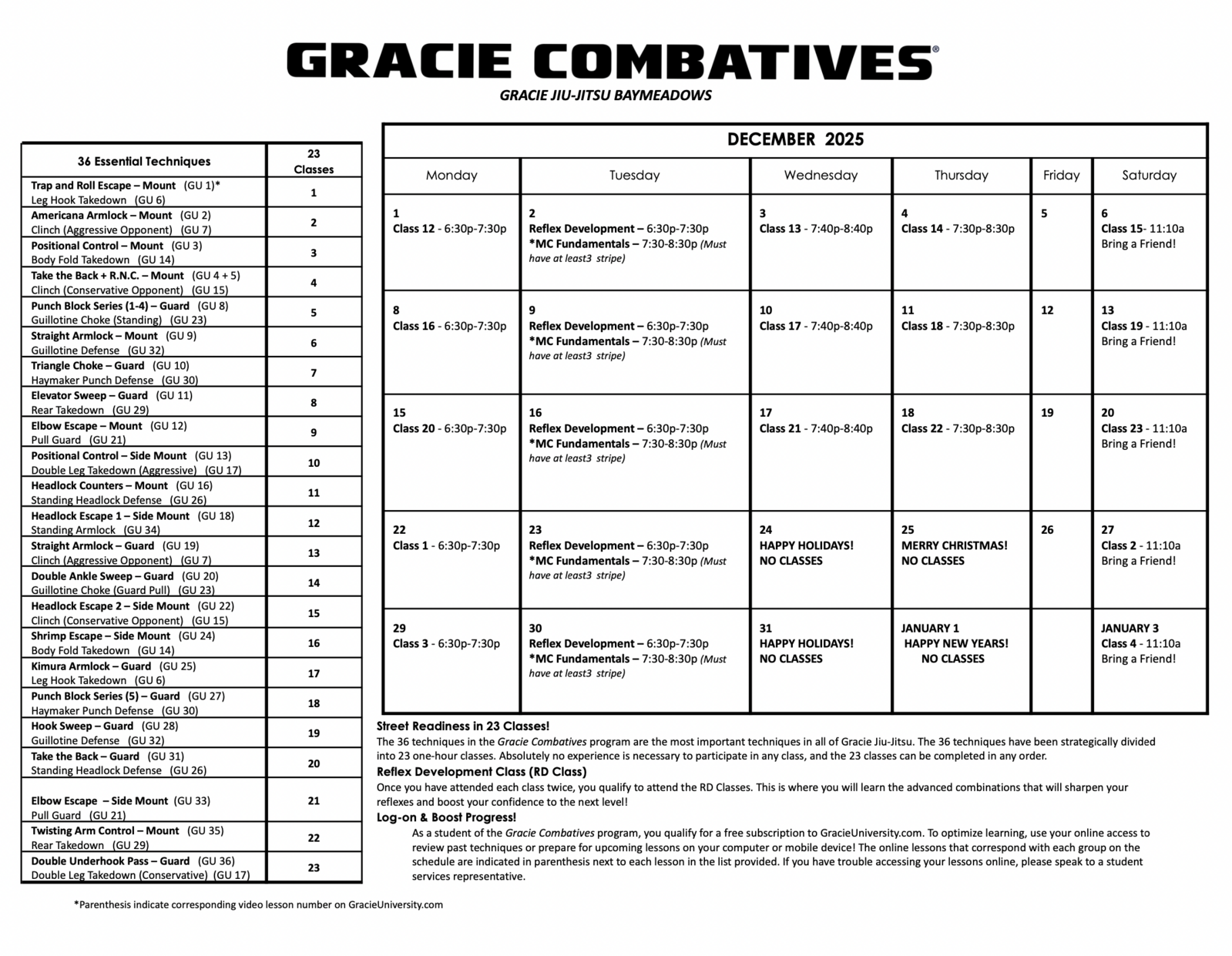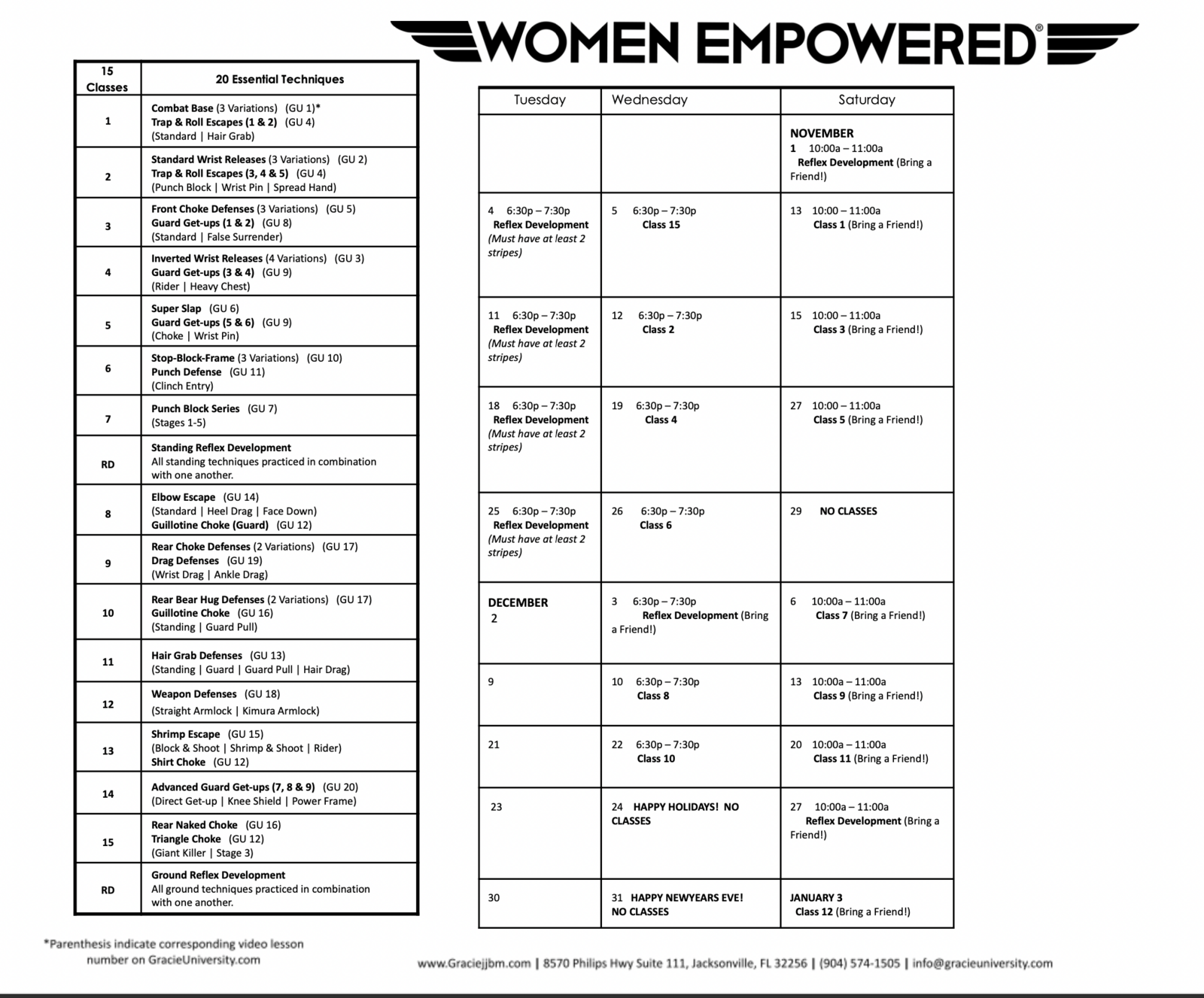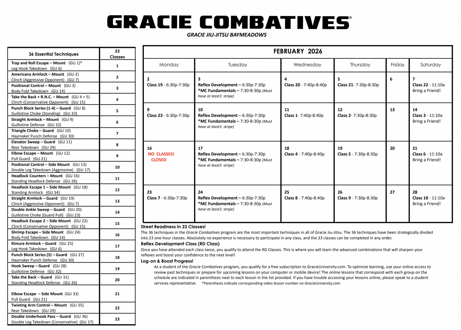 Program Calendars - Gracie Jiu-Jitsu Baymeadows | Jacksonville, FL