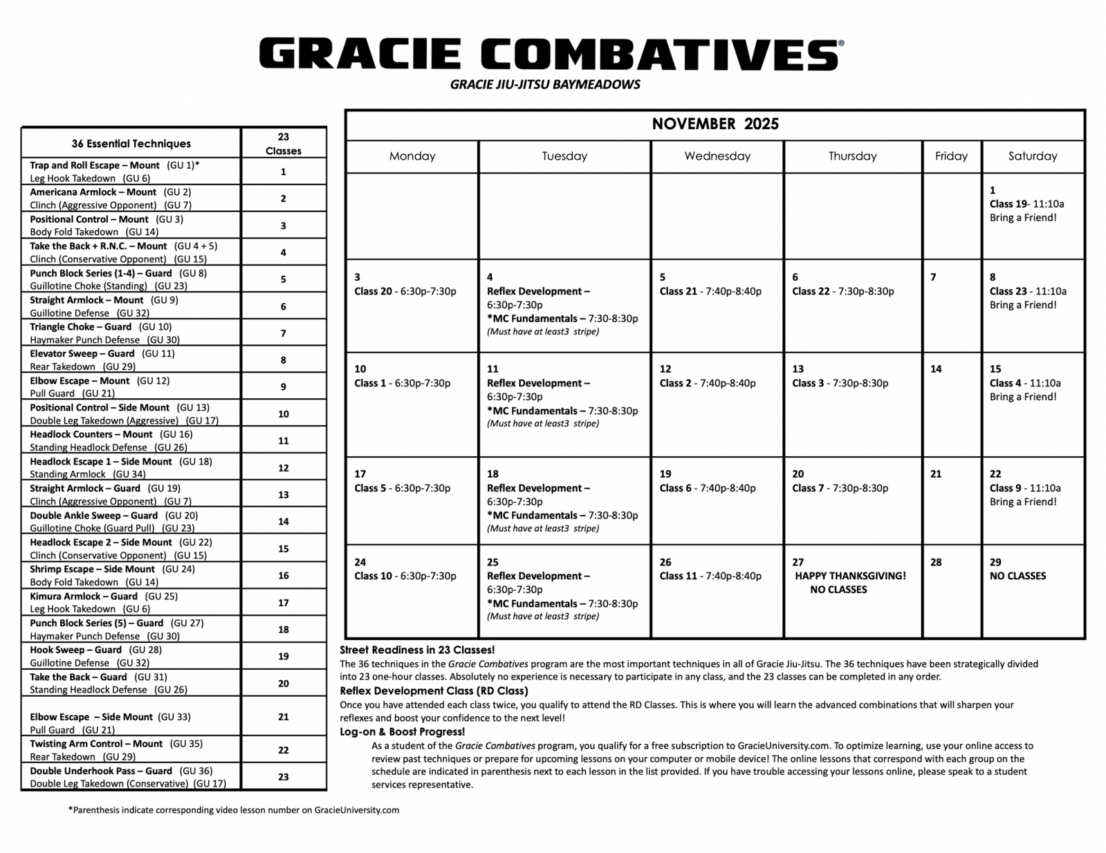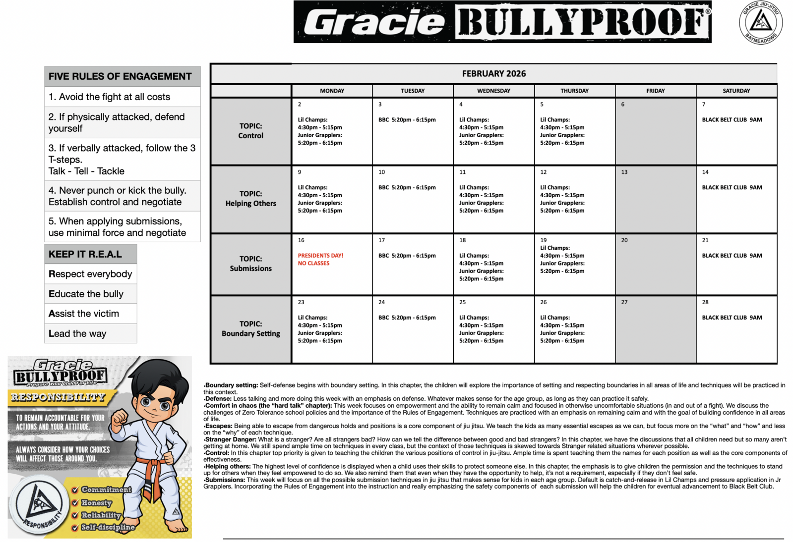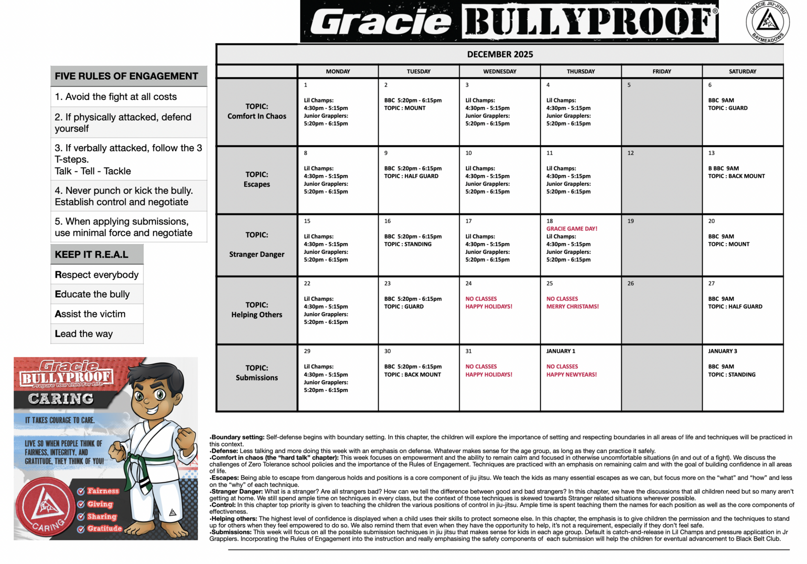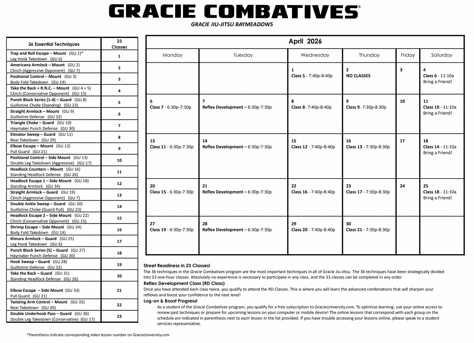 Program Calendars - Gracie Jiu-Jitsu Baymeadows | Jacksonville, FL