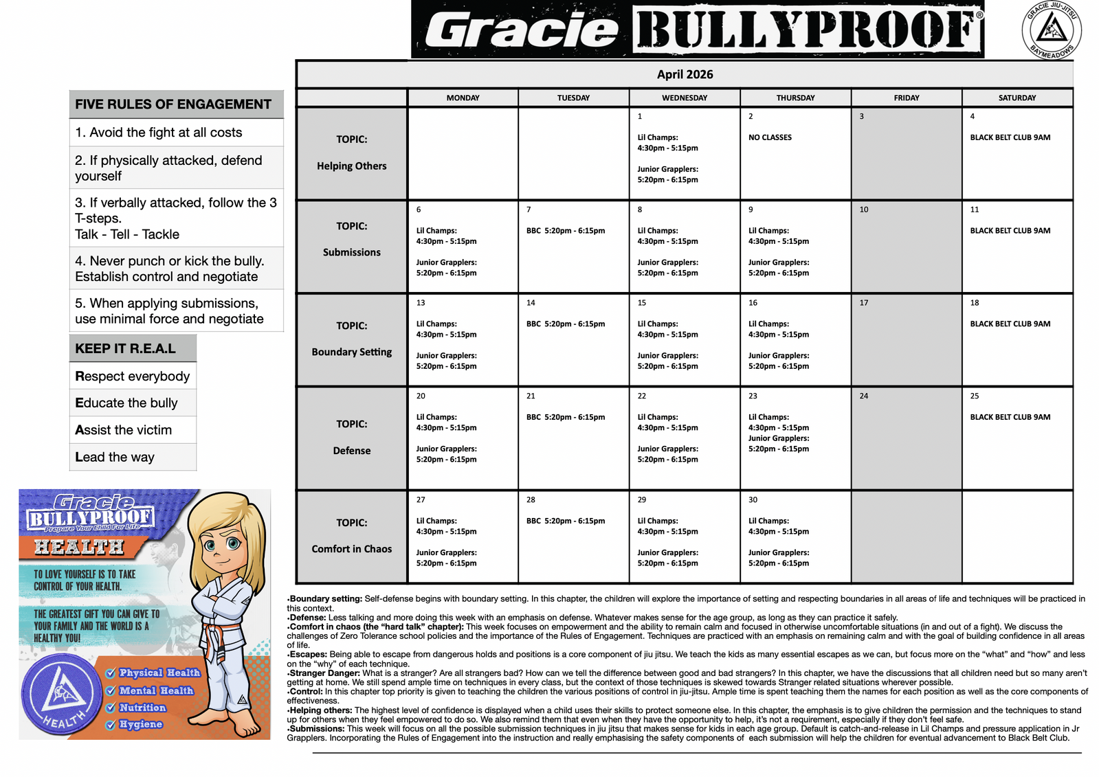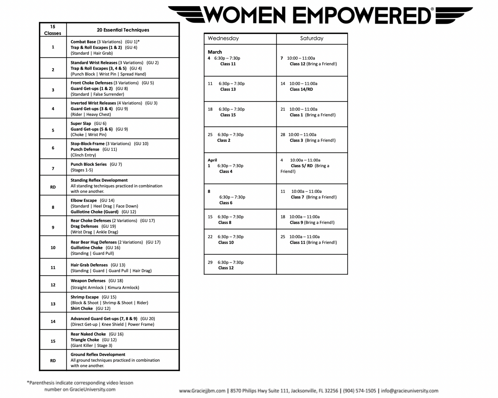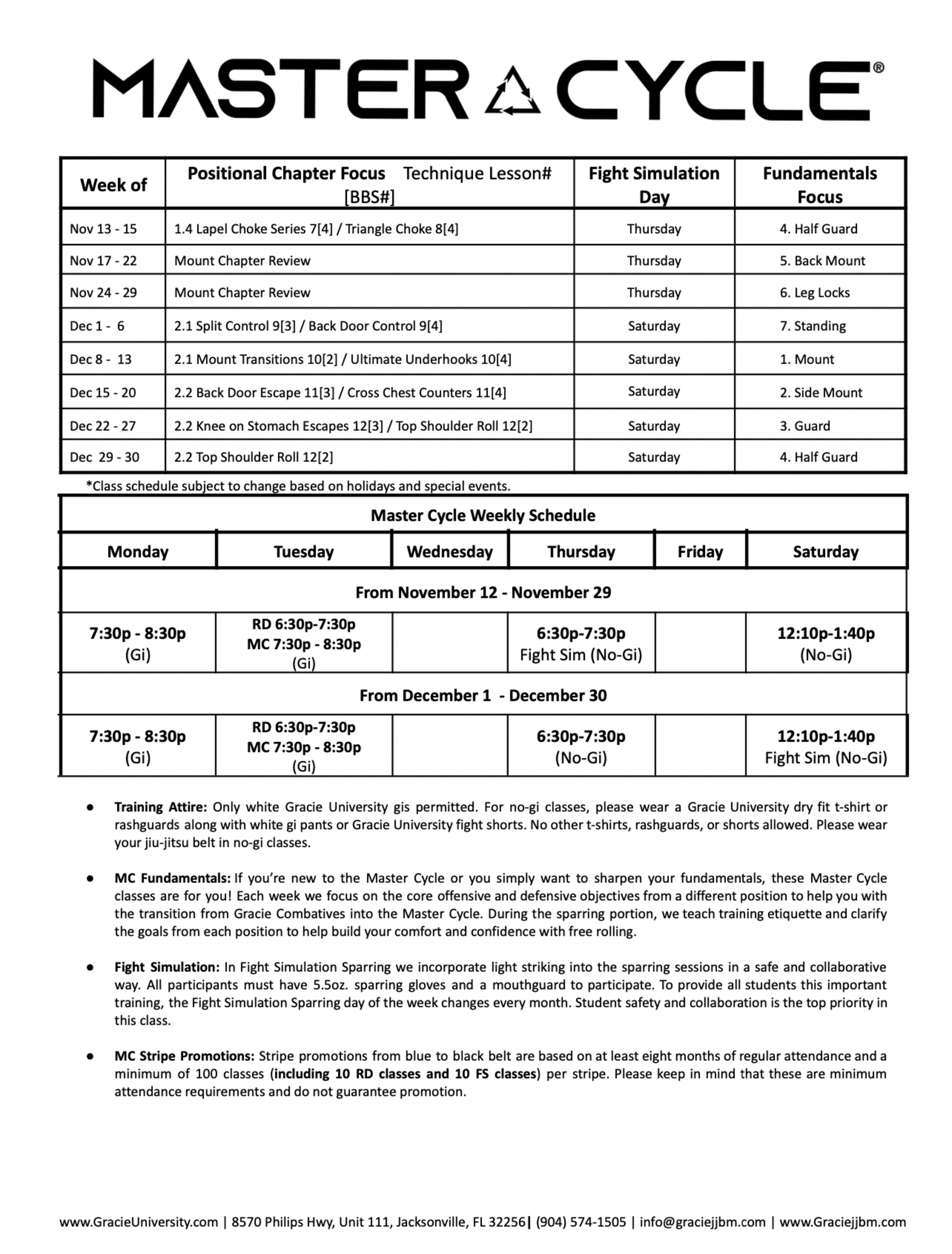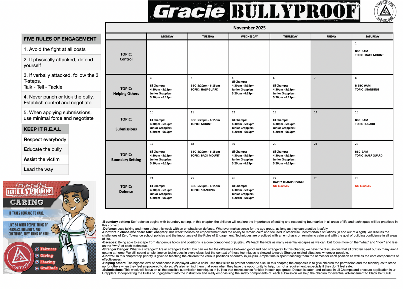 Program Calendars - Gracie Jiu-Jitsu Baymeadows | Jacksonville, FL